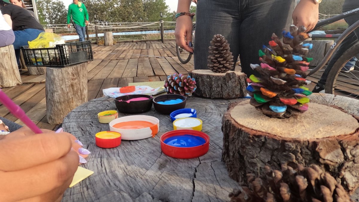 Actividades creativas para toda la familia, como fabricar y pintar tu propio arbolito con piñas de pino. ¡Tu propio recuerdo hecho a mano!