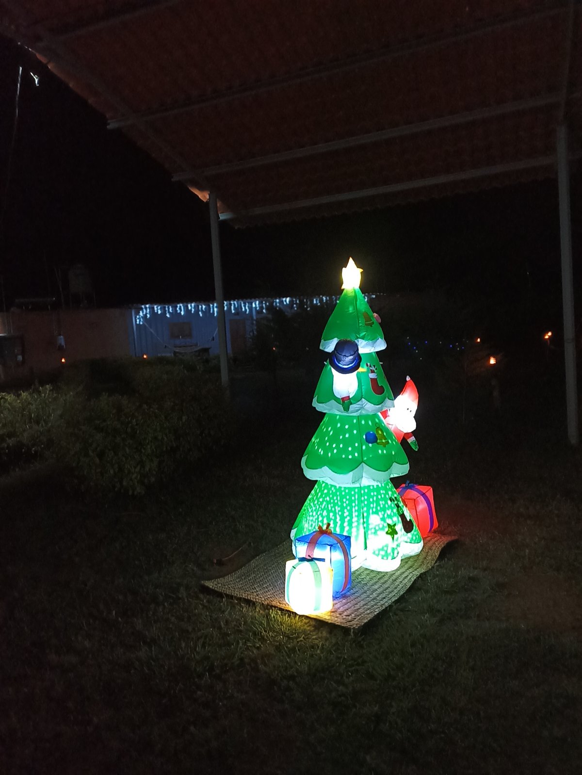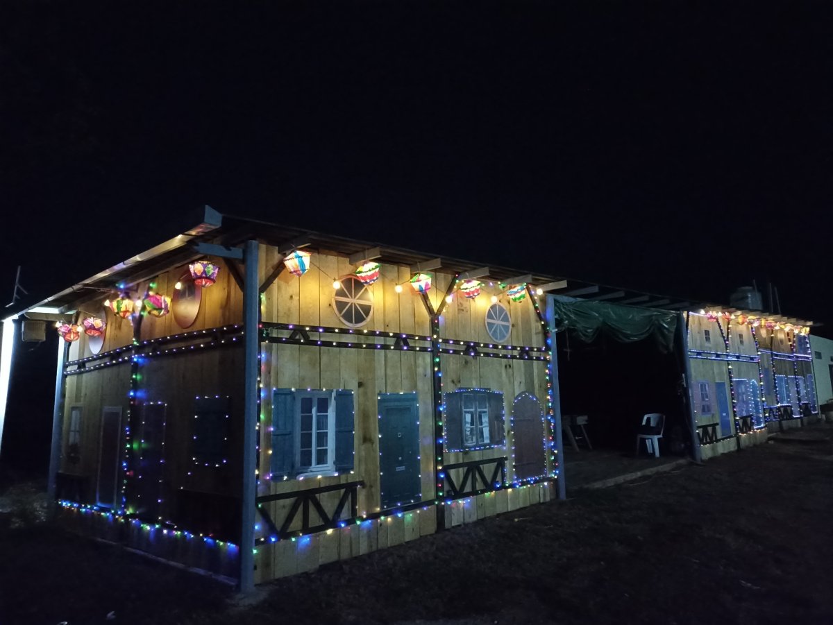 Todo el glamping se transforma en un pequeño pueblo festivo, decorado con luces cálidas, adornos y detalles que crean un ambiente mágico en cada rincón.